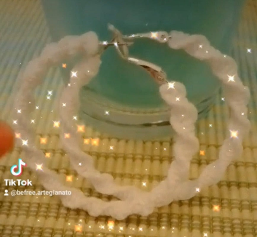 Hoop earring: silver color with white Macrame border